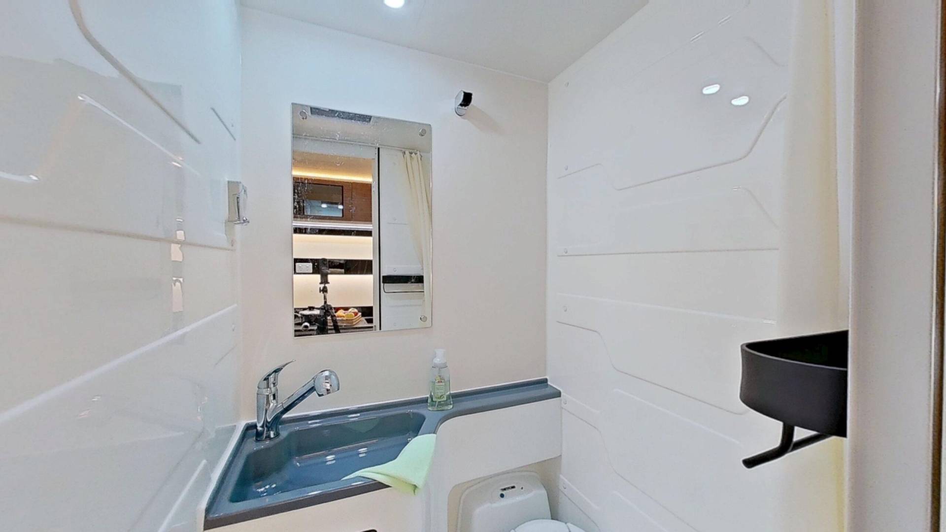 Enjoy the comfort of a fully equipped bathroom in the Mystic series, complete with toilet, shower, hot water, and a 12V pump — keeping you refreshed wherever you travel.